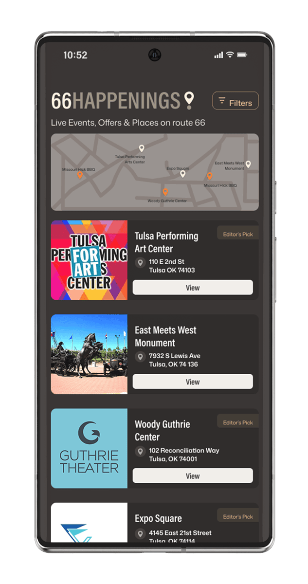 Find your way with smart navigation, discover real-time events and offers, and uncover the stories that shaped each stop. It’s more than maps and directions—it’s a deeper connection to Route 66, built for travelers who want every mile to matter.